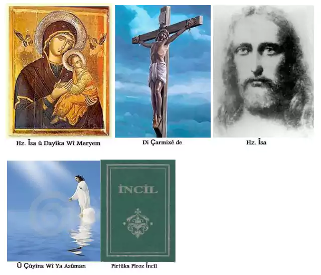 Ji Hazretî Îsa re kitaba pîroz Încîl hatiye şandin. Li pêş zayînê 6 û li paş zayînê heya sala 30 ew jiya ye. Yahudiyan ji Hz. Îsa re „Mesîh“, Yewnanî jî, jê re „Hristos“ gotine. Paşê nave „Hiristiyaniyê“ ji „Hristos“ hatiye holê. Li gor Încîlê Hz. Îsa bi mucîzeya Xwedê û bi rêya rihê pîroz ji Meryemê hatiyê cîhanê. Heya sîh saliya xwe li gel dartiraşekî kar kirye. Di sîh saliya xwe de Xwedê jê re peyamberî rê kirye. Dema belav kirina olê xwe de, li dijî Hz. Îsa, Romayiyan gelek çetînahî jê re derxistine. Bi çarmixê kuştina Hz. Îsa şunda bi rêya 12 Havariyan ola Hiristiyanî hatiye belav kirin. Li gor Hiristiyaniyê Hz. Îsa heya asûman firiye û çûye. Li gor Miselmantiyê jî, roj yê bê ku Hz. Îsa yê ji asûman dakeve erdê. Ewê civata mirovetiyê dîsa bi terbiyê û bi edebê bide jiyandin. Ewê xirabiyê ji ortê rabike. Qasî çil sal jiya şunda yê biçe ser heqiya xwe.