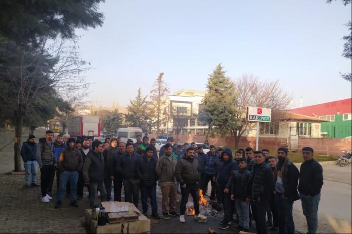 Antep’te birçok fabrikada verilen zamlara karşı eylemler sürüyor. 4. Organize Sanayi Bölgesi’nde bulunan Karpen’de işçiler yapılan zamma karşı eyleme geçti. Plastik PVC profil üretimi yapılan fabrikada işçilere dün geceden beri direnişte. Asgari ücrete mahkum edilmek istenen işçilerin talebi 5 bin 300 lira.