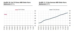 Katılımcıların cari yıl sonu döviz kuru (ABD Doları/TL) beklentisi bir önceki anket döneminde 51,17 TL iken, bu anket döneminde 51,09 TL oldu. 12 ay sonrası döviz kuru beklentisi ise bir önceki anket döneminde 51,89 TL iken, bu anket döneminde 52,39 TL olarak gerçekleşti.