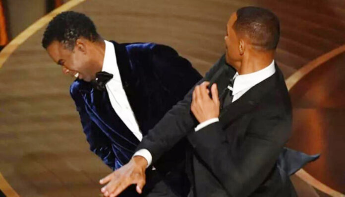 Bu şaka ya da espriden rahatsız olan Will Smith aniden sahneye yürüdü ve Chris Rock’a şak diye bir tokat attı. Hiçbir şey olmamış gibi de dönüp yerine oturdu. Olaya tanık olanlar önce, bu sahneyi yazılmış bir parodi gibi zannettiler. Ancak koltuğuna oturan Smith “Eşimin adını lanet ağzına alma” diye iki defa bağırınca, ortam buz kesti, olayın ciddiyeti anlaşıldı. Ancak Will Smith ödülünü alınca da gözyaşları içinde özür diledi. Organizasyon tarafından ise “Akademi, Bay Smith’in dün geceki programdaki eylemlerini kınıyor. Tüzüğümüz, davranış standartlarımız ve California yasalarına uygun olarak daha fazla eylem ve sonuçları araştıracağız” açıklaması yapıldı. Bunun üzerine Will Smith, sosyal medya hesabından Chris Rock ve herkesten özür diledi. Yaptığı eylemin kendisine yakışmadığını söyledi. Chris Rock ise karakola gidip şikâyet etme hakkını reddetti.