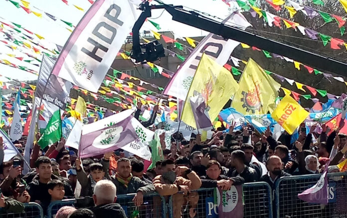 Hakkari’de Newroz ateşi Sümbül Dağı eteklerinde yakıldı. Kutlamanın yapıldığı alan HDP bayraklarıyla süslenirken, “HDP halktır susturulamaz”, “Semra Güzel halkın iradesidir”, “Susma, suça ortak olma, hasta tutsaklara özgürlük” ve “Şimdi gençlik zamanı” yazılı pankartlar asıldı.
