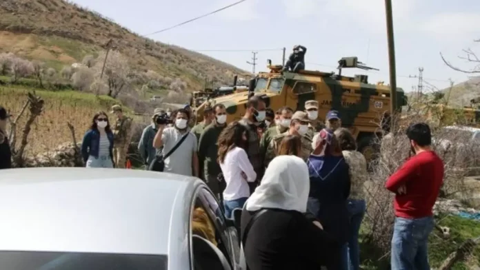 Valiliğin 7 günlük yasak kararını heyete gösteren karakol komutanı, bölgede sürdürülen askeri operasyonlar nedeniyle bu kararın alındığını öne sürdü.